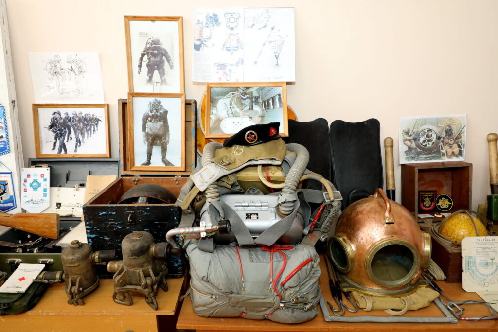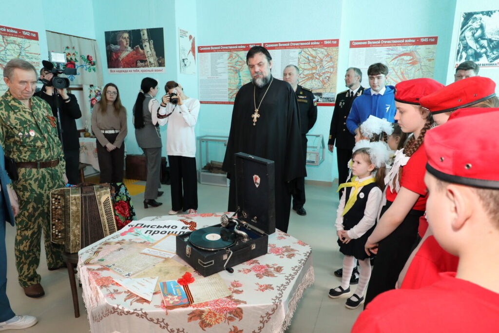 Затем всех провели на экскурсию «Тропою памяти». История музея началась в 2010 году с находок поискового отряда. Сегодня в экспозиции — земля с мест сражений городов-героев, фронтовые письма, предметы военных лет и экспонаты с Донбасса, переданные сообществом «Доброфронт». Отдельные стенды посвящены героям Дона, детям войны и участникам специальной военной операции. Также гости побывали в морском классе клуба моряков-подводников Волгодонска, где узнали историю создания класса и увидели форму и элементы снаряжения подводников.