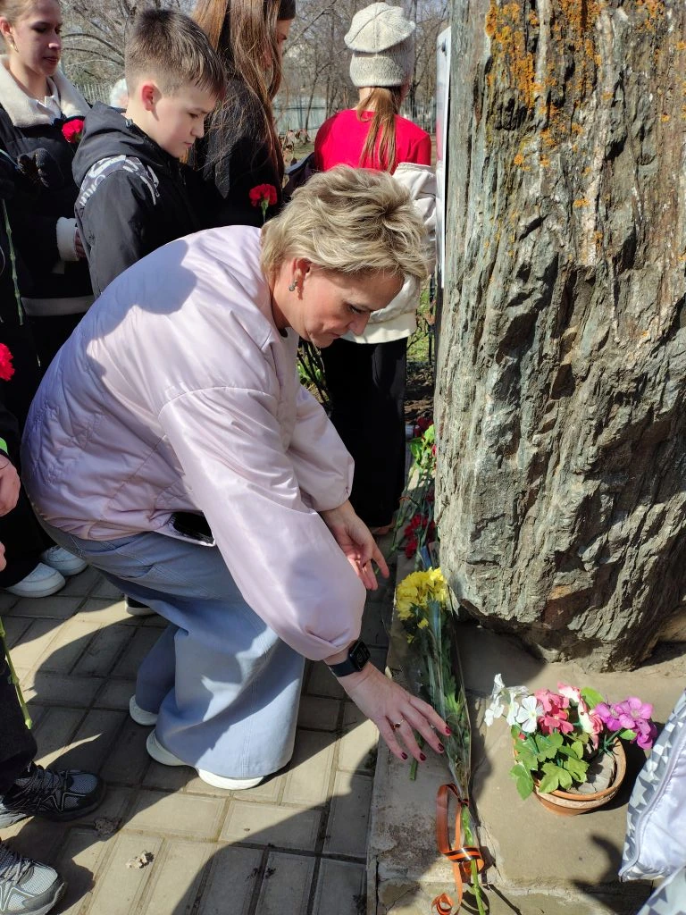 После завершения субботника состоялось торжественное возложение цветов к памятнику. Татьяна Недоступенко выразила благодарность всем участникам, особо отметив вклад лицеистов и директора Лицея № 24 Нины Белан.