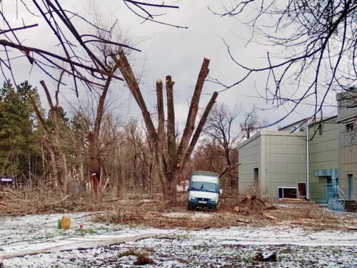 Санитарная и формовочная обрезка деревьев в парке Победы продолжается