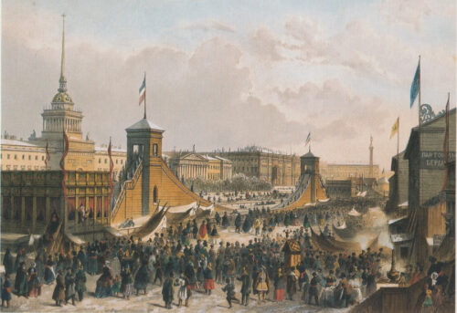 Отец писателя – купец Сергей Шмелев, был «первый мастер устраивать народные гулянья… фейерверки и ледяные горы». Последние в дни Масленицы пользовались особенным спросом. Развлечение это было любимо всеми – от простонародья до особ императорской крови.