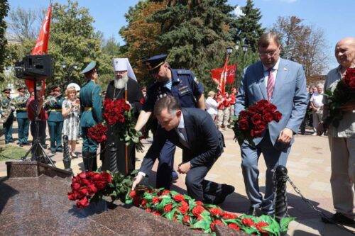Юрий Слюсарь возложил цветы к памятнику Герою России Алексею Бересту