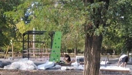 На будущей детской площадке в «Юности» начали монтировать оборудование