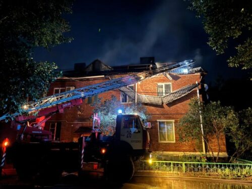 В доме по переулку Донской, 19 продолжаются работы по ликвидации последствий пожара, который произошел в ночь на 16 августа. Возгорание началось в подъезде и вскоре перекинулось на крышу.