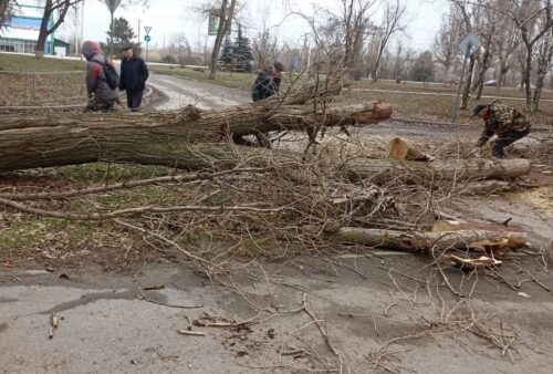 В Волгодонске старое дерево упало на проезд между домами
