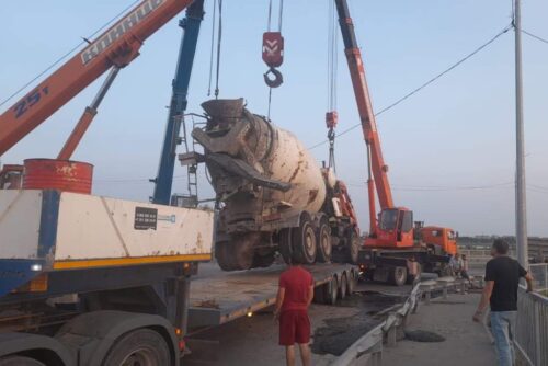 На въезде на третий мост в Волгодонске опрокинулся автомиксер
