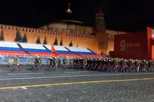 Донские казаки приняли участие в ночной тренировке Парада Победы на Красной площади