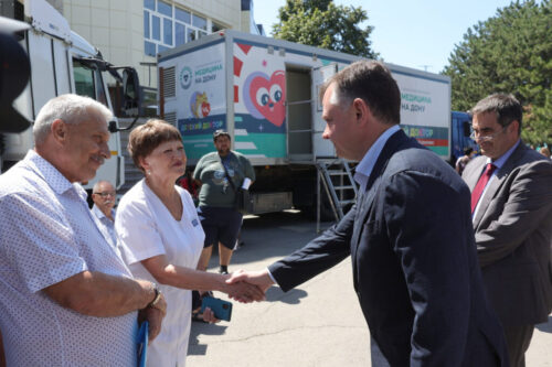 ЗдравоохранениеНа ДонуНаш городНовостиГлава донского региона Юрий Слюсарь поблагодарил медиков «поезда здоровья» за помощь дончанамГлава донского региона Юрий Слюсарь во время рабочего визита посетил ЦРБ Азовского района, куда прибыл медицинский «поезд здоровья» (35 врачей узких специальностей и спецавтомобили с диагностическим оборудованием), сообщил интернет-портал донского…13.08.202588