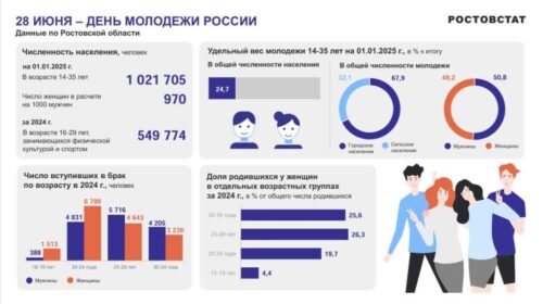 По данным Территориального органа Федеральной службы государственной статистики на начало 2025 года, в Ростовской области проживает свыше 1 021 700 жителей в возрасте от 14 до 35 лет – то…