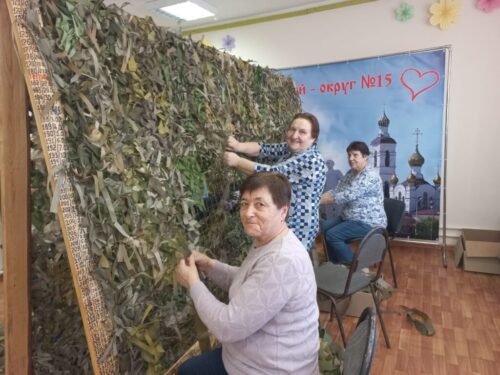 Волонтёрская группа «Ангелы добра» из Волгодонска уже три года занимается сбором гуманитарной помощи и плетением маскировочных сетей для участников Специальной военной операции. Группа работает на базе общественного центра микрорайона «Звездный» в избирательном округе №15 (депутат Александр Морозов, помощник Елена Щербина).
